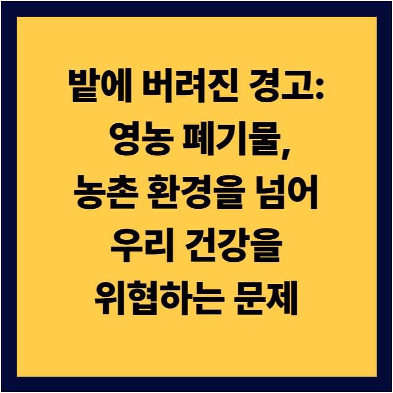 영농 폐기물 문제는 정부, 기업, 농업인, 그리고 시민 모두의 관심과 협력이 필요한 문제입니다.